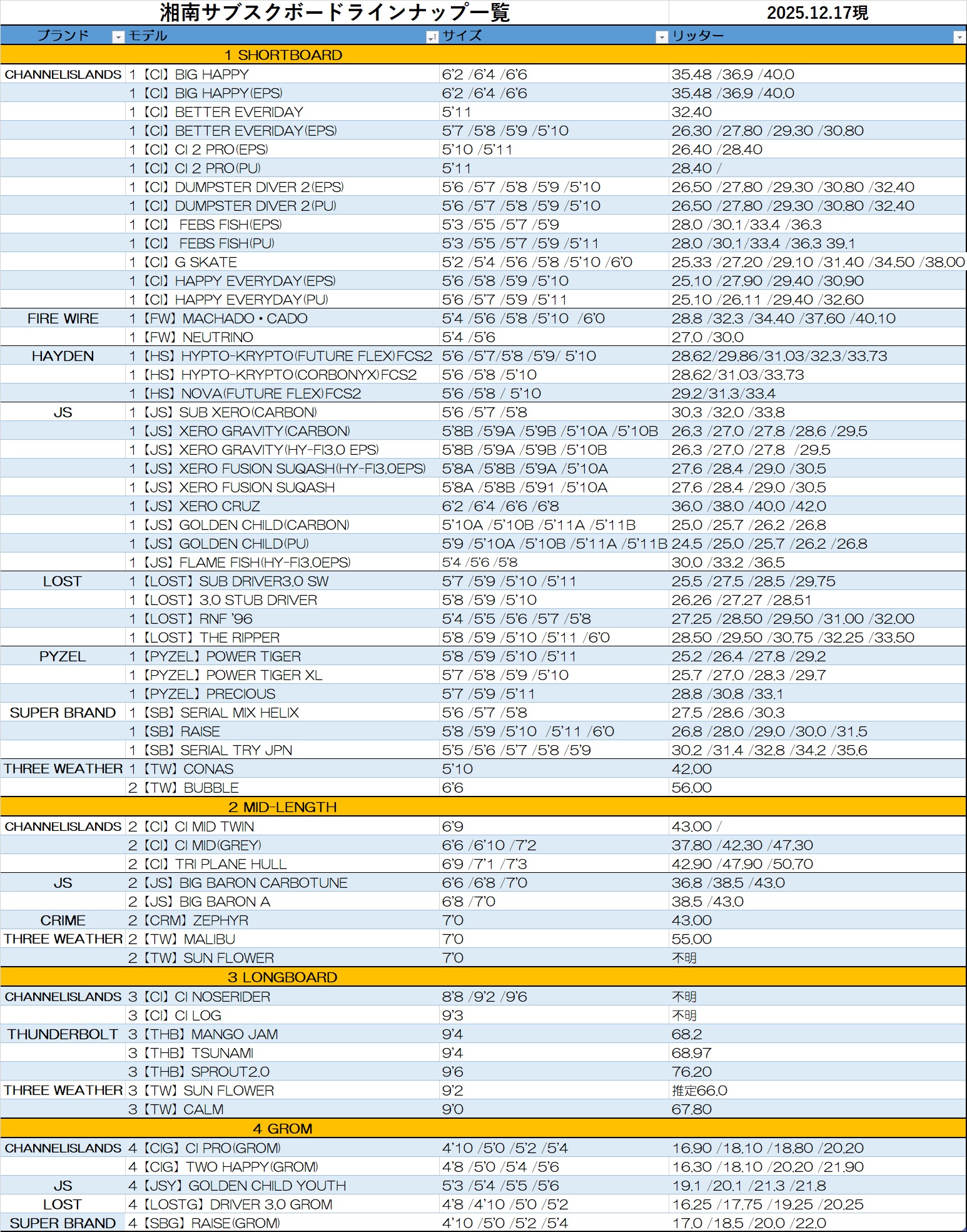 サブスクレンタルボードリスト↓↓↓
