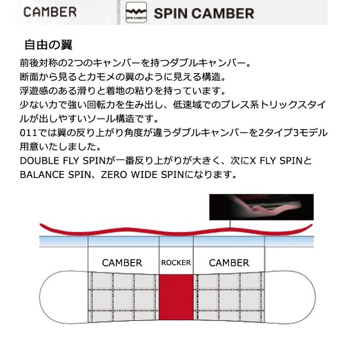 アウトラインはDOUBLE FLYでもキャンバーとは違うエッジプレッシャーを軽減した乗り味。