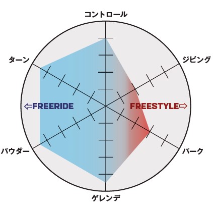 パウダーでの高い浮力と圧雪バーンでの鋭いエッジコントロールを両立し、