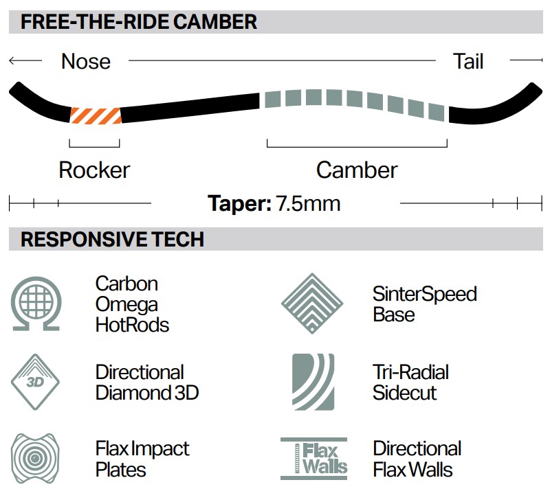 さらに、フリーキャンバー+3D形状がエッジグリップとルーズさを高いレベルで両立し、
